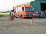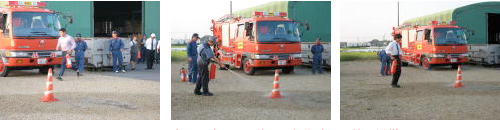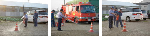 実際に消火器を使用し初期消火訓練の模様