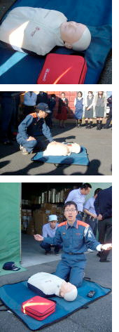 AED(自動体外式除細動器)とは、心臓が痙攣し血液を流すポンプ機能を失った状態(心室細動)になった心臓に対して、電気ショックを与え、正常なリズムに戻すための医療機器。